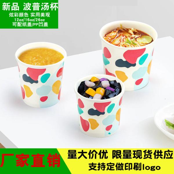 OEM Disposable Plastic Lid Kraft Paper Soup Bowl With Surface Pattern Images |
